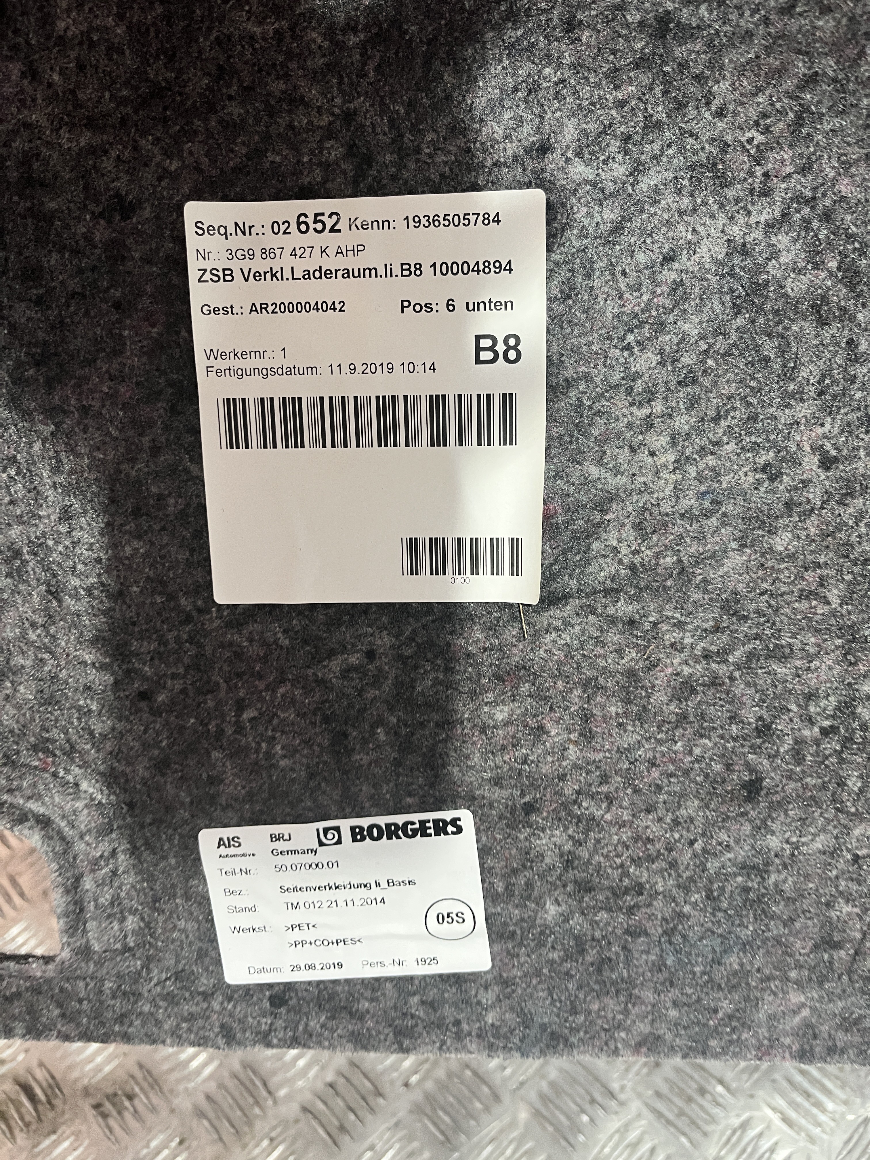 BOCZEK BAGAŻNIKA LEWY VW PASSAT B8 14- KOMBI