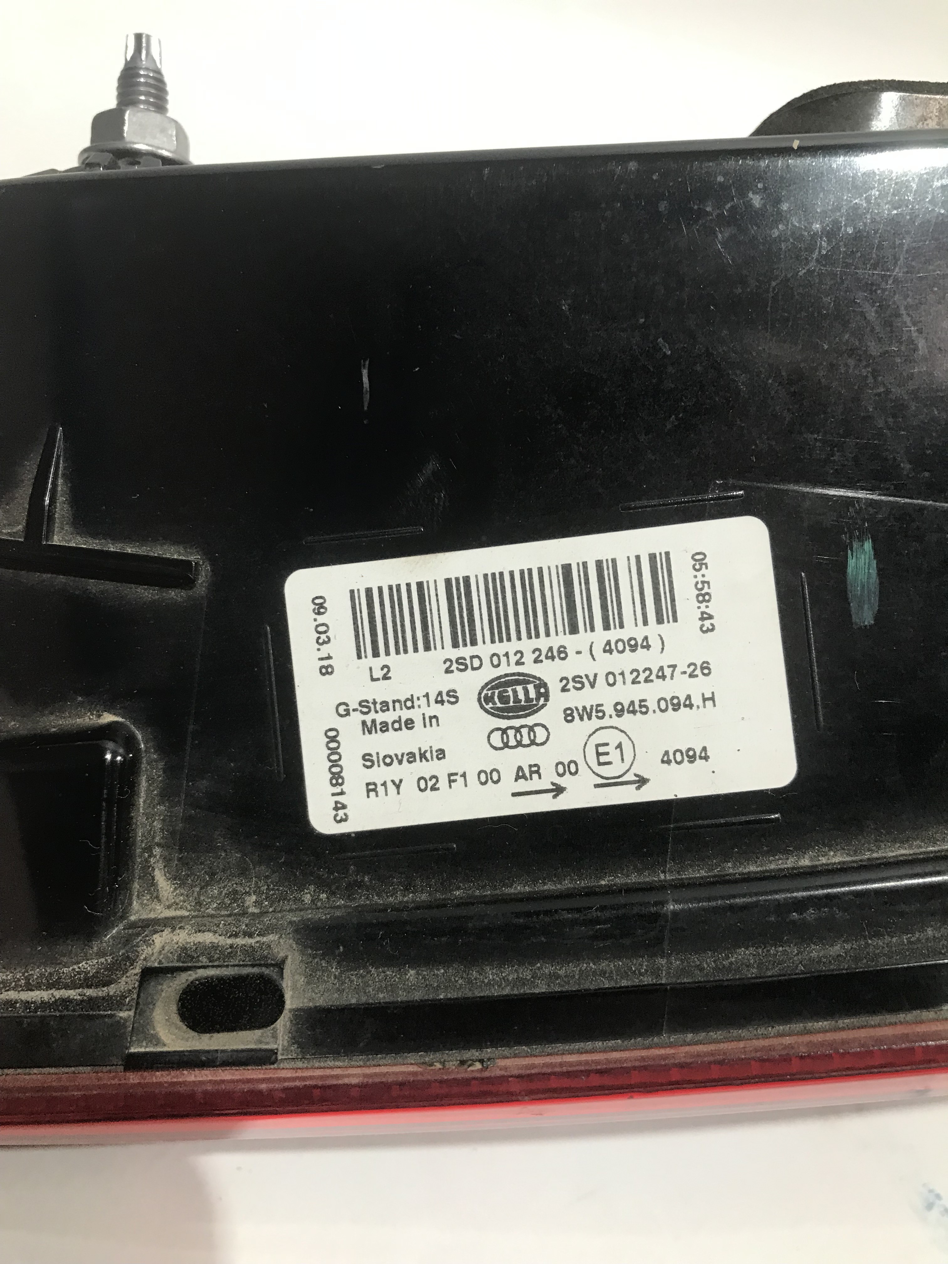 LAMPA W KLAPE BAGAŻNIKA A4 B9 8W 15- 8W5945093H