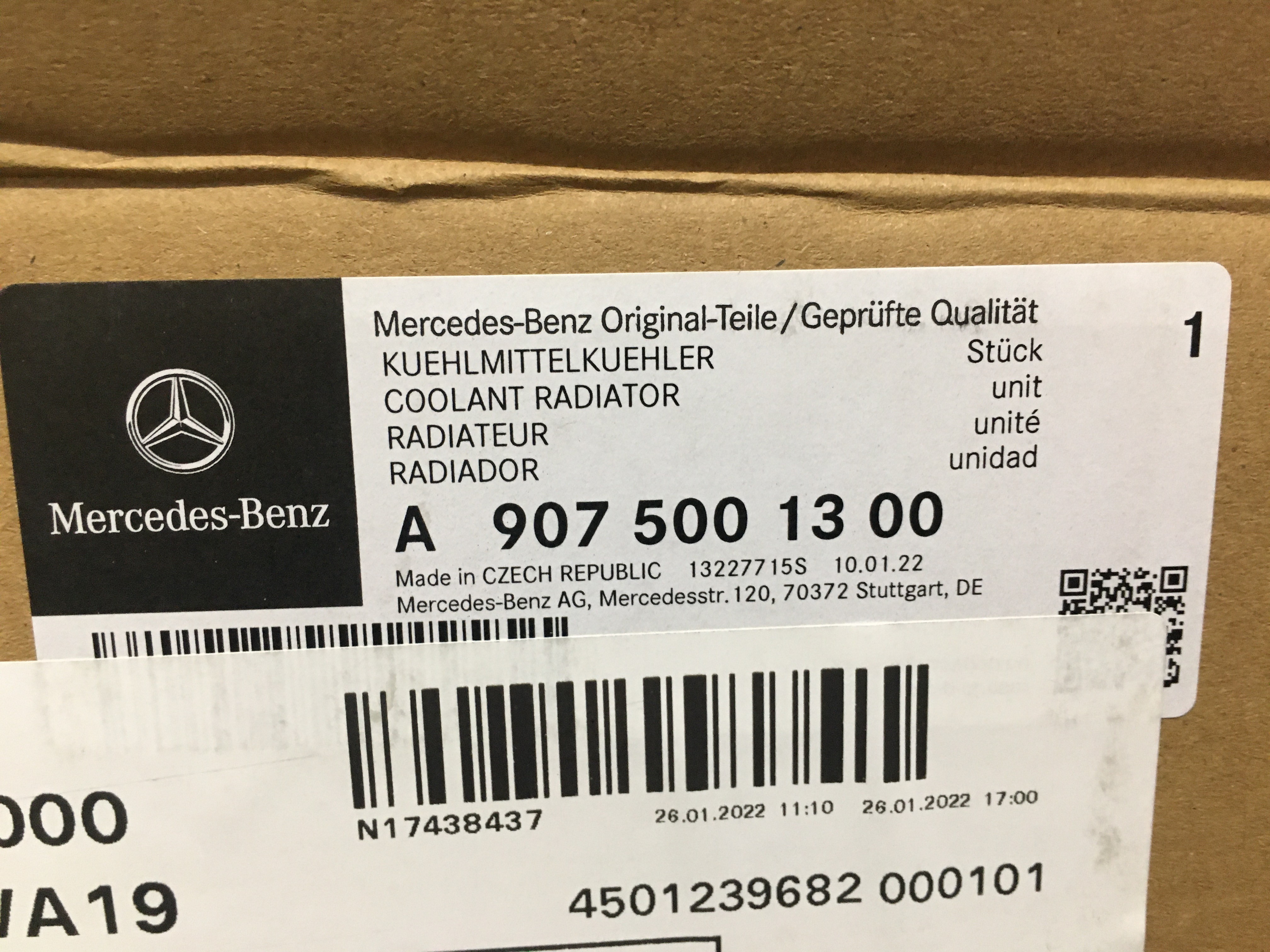 CHŁODNICA WODY SPRINTER 18 - A9075001300 ORG