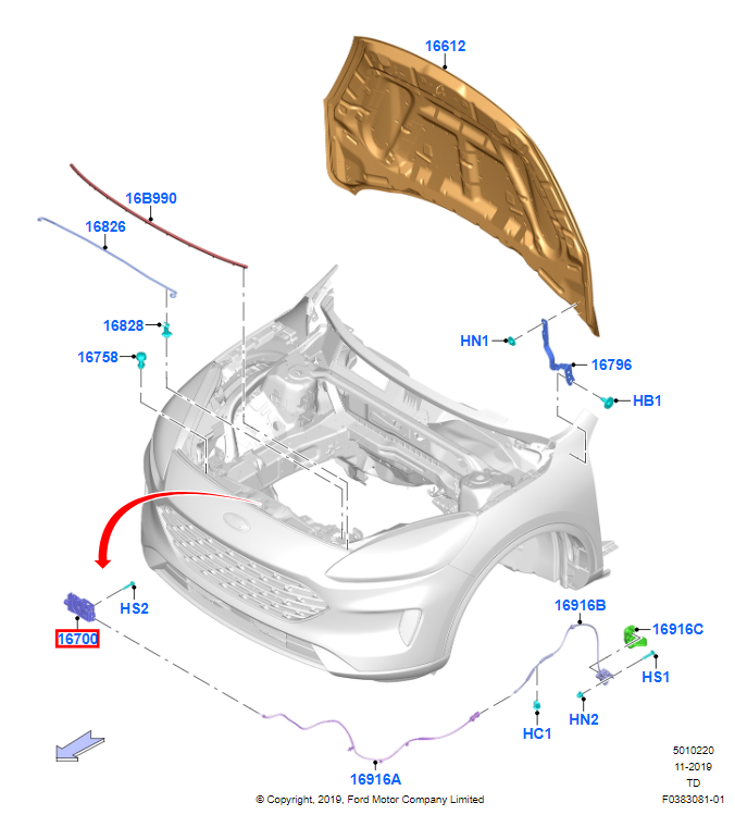 ZAMEK MASKI POKRYWY SILNIKA FORD KUGA MK3 20-
